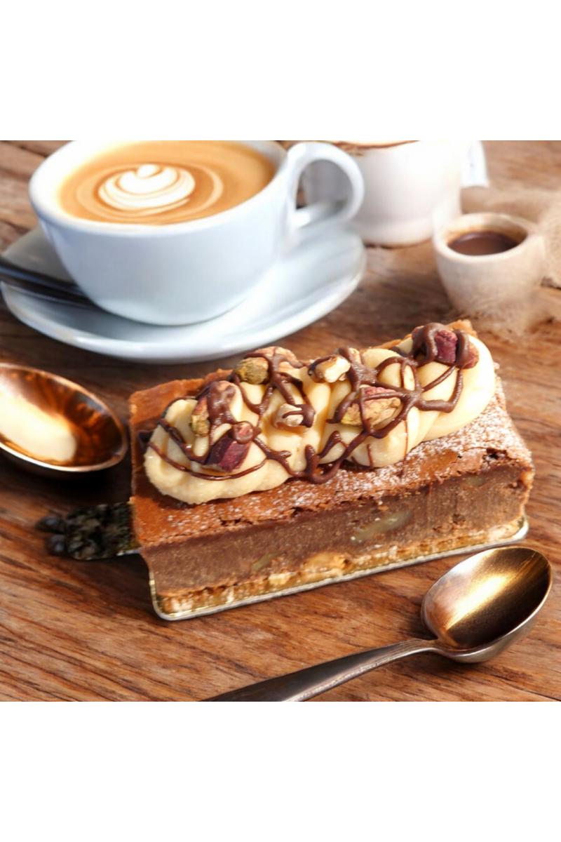 Vår egenproduserte deilig myk brownies med valnøtter.