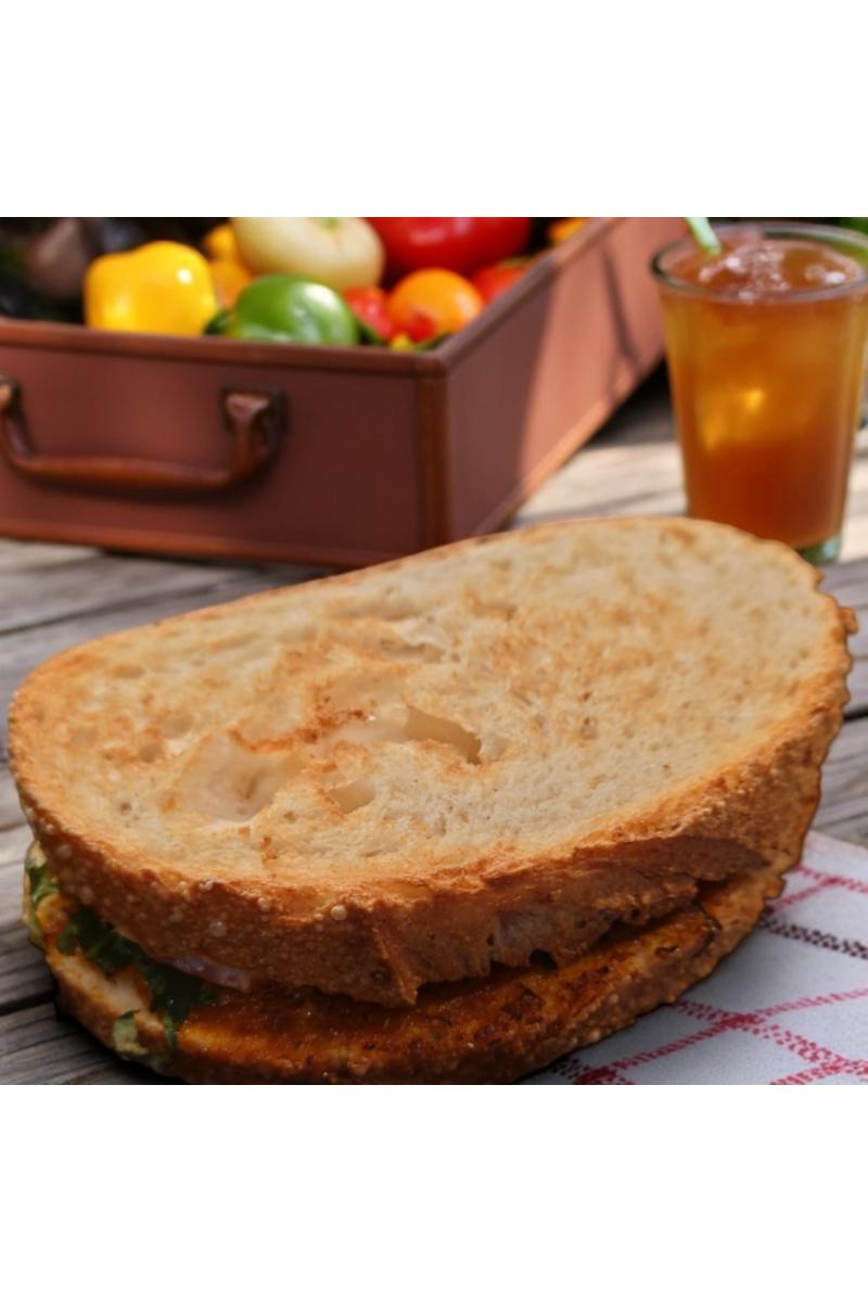 Toast med salami ventricina, tomatpesto, mozzarella og taleggio.