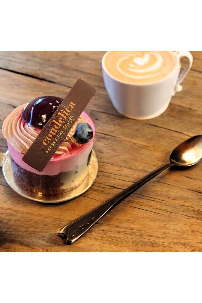 Bringebærmousse med skogsbærkjerne på sjokoladebunner. Bosco er glutenfri og laktosefri.