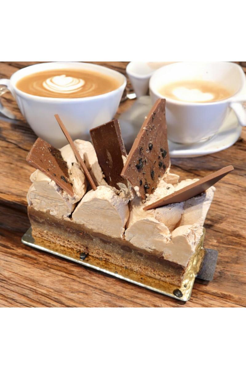 NOK 110.00 Myk browniesbunn med melkesjokoladeganach og lakriskrem, sjokoladeplater med havsalt og lakris.