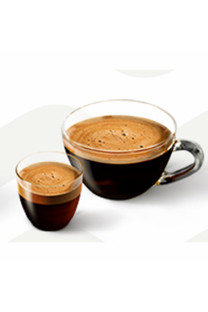 Americano dobbel, er en dobbel espresso tilsatt vann. Styrken tilsvarer en vanlig svart kaffe.